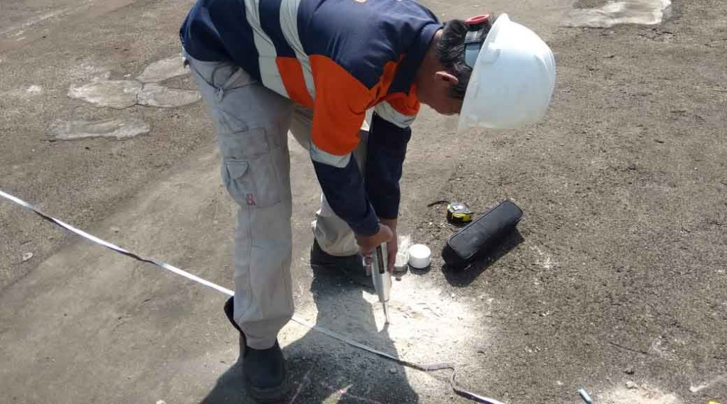 - Sebelum memulai pengujian, permukaan beton yang akan diuji harus dibersihkan dan diratakan dengan batu penggosok karena alat ini peka terhadap variasi yang ada di permukaan beton.